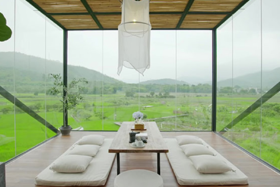 Smeštena u zelenim brdima predgrađa Guangdžoua, njihova trospratna zajednička kuća ima dovoljno prostora za grupna okupljanja u prizemlju, dok na spratu ima prostrane spavaće sobe. Ovo zdanje ima čak staklenik za čajanke iz kog puca pogled na lokalna pirinčana polja.