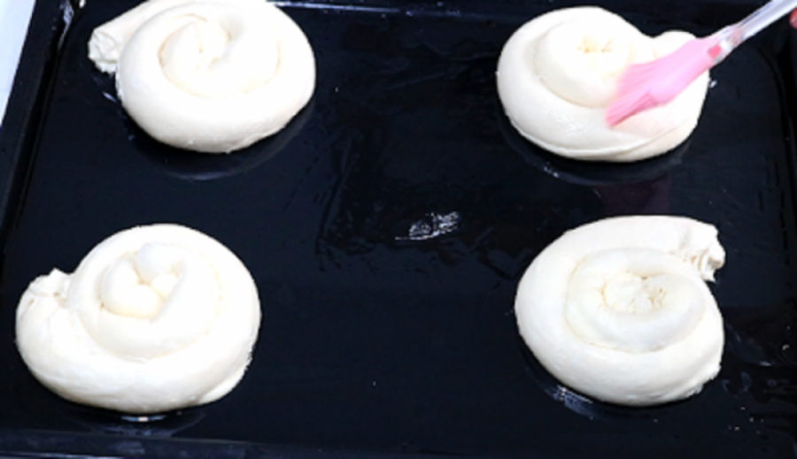 na pola pa je uviti kao puža i staviti u podmazanu tepsiju.