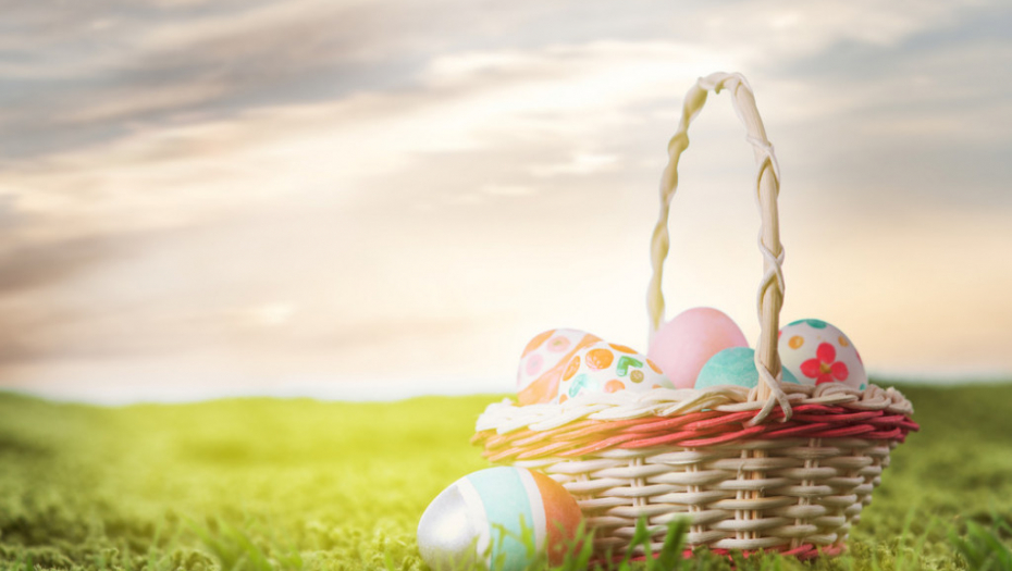 Kolut od lepljive trake zalepite na dno korpe kao postolje, a u korpu stavite veštačku travu, cveće i naravno uskršnja jaja. Ukoliko u porodici imate mališana možete staviti i igračku ili figuru zeca.