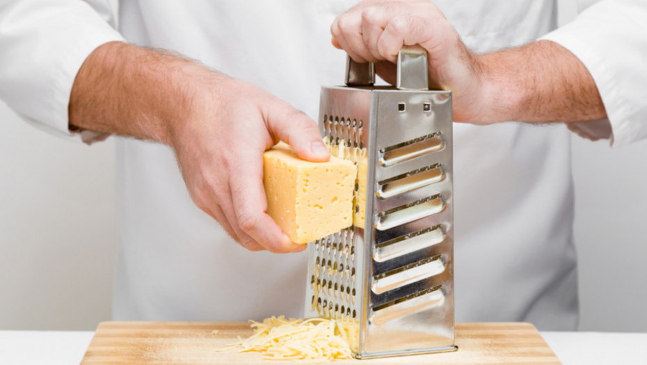 Evo trika koji može rešiti ovaj problem: sir rendajte tako da rende okrenete horizontalno na kuhinjski pult, s rupicama za rendanje sira okrenutim ka gore.